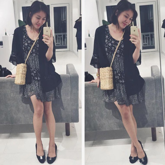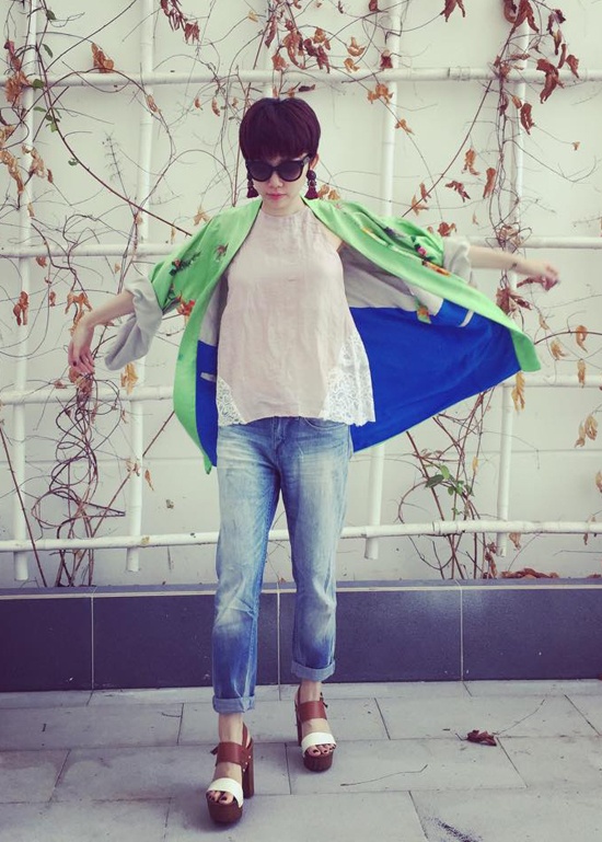 Bà mẹ một con Lưu Hương Giang đón đầu xu hướng áo khoác kimono từ cuối năm 2014. Kiểu mốt trở thành trào lưu hấp dẫn nhiều tín đồ thời trang.