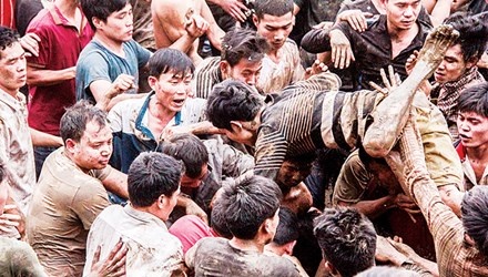 Hàng nghìn thanh niên tranh nhau cướp phết tại Lễ hội cướp phết ở Tam Nông, Phú Thọ năm 2016. |