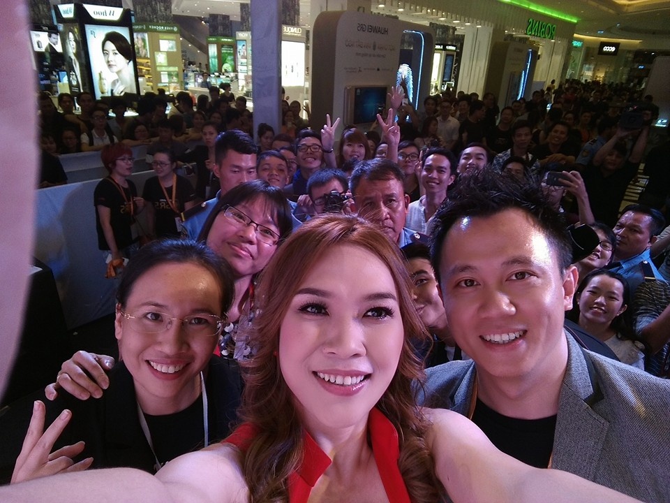 Mỹ Tâm selffie với người tham gia sự kiện bằng chiếc điện thoại Huawei GR5. |