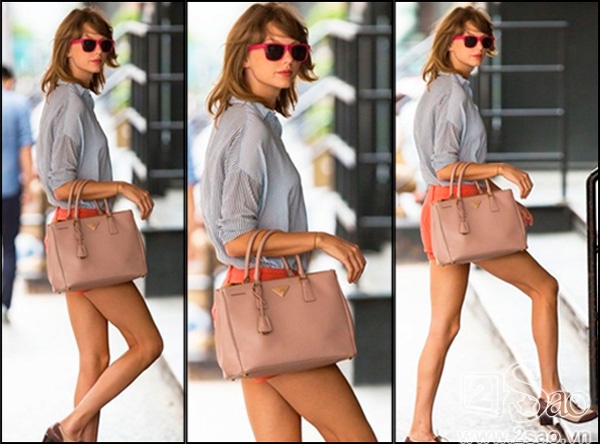 | Taylor Swift điệu đà trên phố New York với chiếc túi xách hồng hiệu Prada có giá 2.430 USD (khoảng 51 triệu VNĐ). |