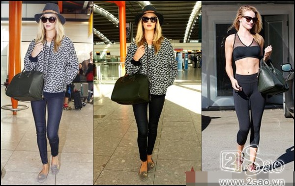 | Rosie Huntington rất ưa chuộng túi to hiệu Givenchy. Cô sử dụng đi tập thể dục, xuất hiện tại sân bay. |