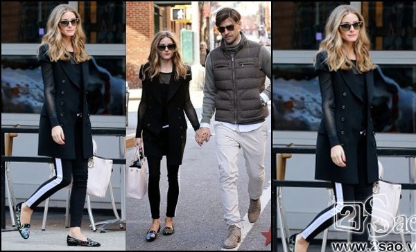 | Khi diện bộ đồ tối màu, Olivia Palermo chọn một chiếc túi sáng màu hiệu Christian Dior để kết hợp. |