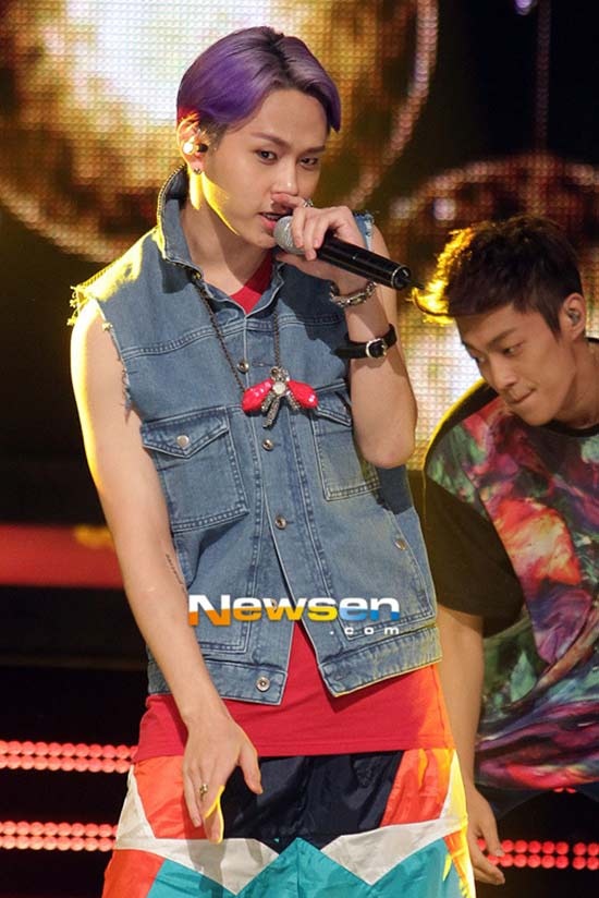 | Junhyung (BEAST) nổi bật với mái tóc tím. Nguồn: Newsen |