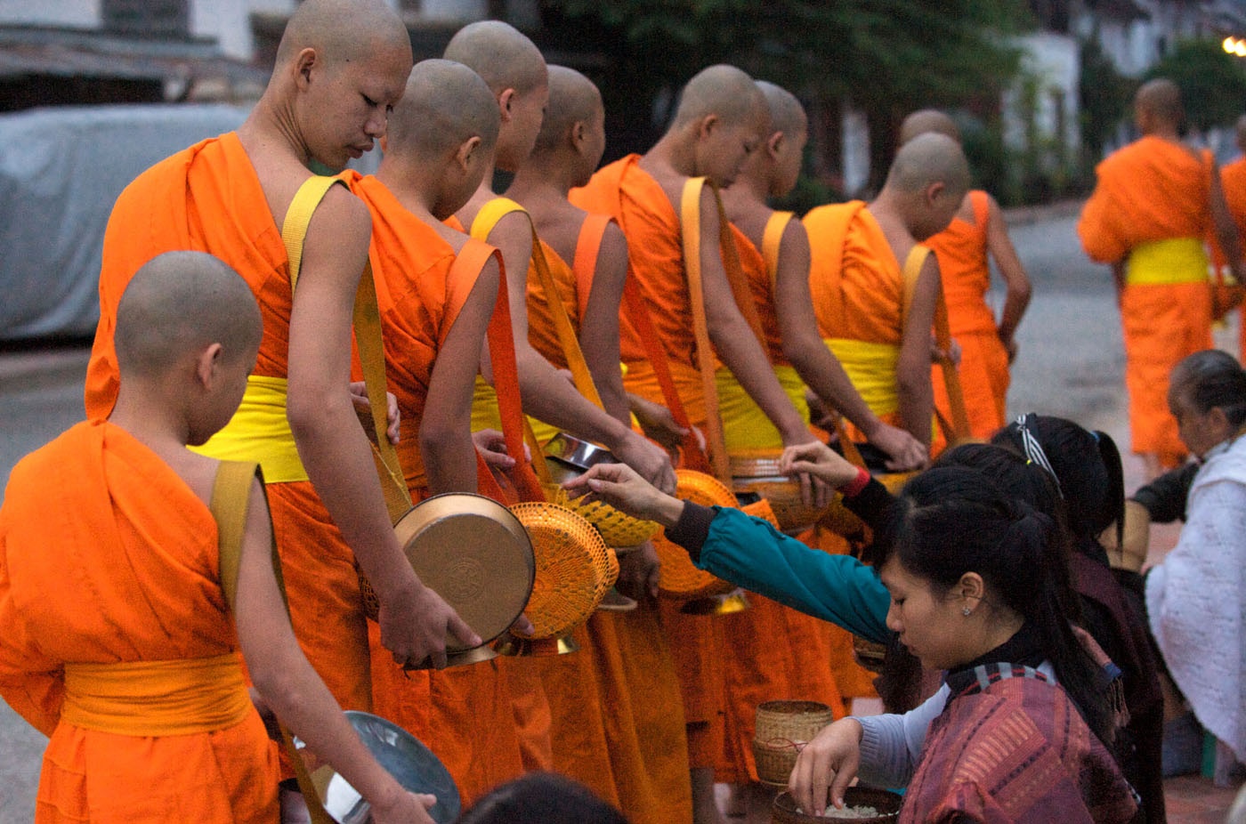 Cố đô Luang Prabang thu hút du khách với nhiều ngôi chùa cổ có giá trị nghệ thuật cao, được xây dựng qua nhiều triều đại, trên đó in dấu tích của nơi từng là trung tâm Phật giáo của xứ Triệu Voi. Vào mỗi sớm tinh mơ, hình ảnh các nhà sư đi khất thực trên phố Phon Heuang luôn gây sự tò mò cho du khách nước ngoài. Mỗi khi có nhà sư đi qua, người dân địa phương quỳ trước cổng nhà, cung kính dâng thức ăn.