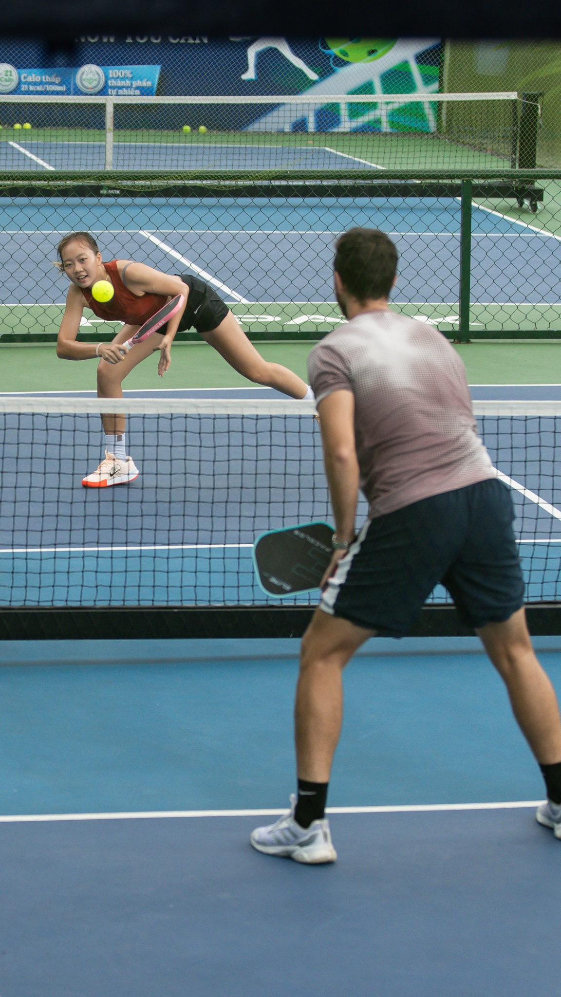 | Mỗi tuần, tôi sẽ tập pickleball cùng huấn luyện viên khoảng 3 giờ. Vào những buổi sáng rảnh rỗi, tôi thường chơi pickleball cùng bạn bè. Pickleball hiện là môn thể thao nhiều tiềm năng và một số trường quốc tế đã bắt đầu phát học bổng cho VĐV. Tôi đầu tư nghiêm túc cho pickleball lẫn việc học để vào được trường như ý. |