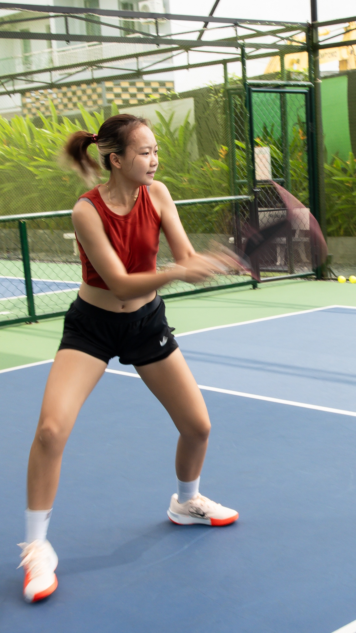 | Tôi chỉ bắt đầu luyện tập pickleball vào tháng 1 năm nay. Trước đó, tôi là VĐV tennis và từng giành chức vô địch giải tennis trẻ TP.HCM năm 2018. Tôi bắt đầu chơi thể thao từ năm 7 tuổi và chính thức tham gia các giải đấu khi 9 tuổi. 12 tuổi, tôi được vào đội tuyển quốc gia môn tennis. |