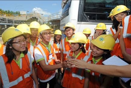 | Các “kỹ sư” đang chuyền tay nhau xem mẫu nước đã qua xử lý bởi hệ thống hiện đại và tiên tiến nhất của Nhà máy giấy Vina Kraft. |