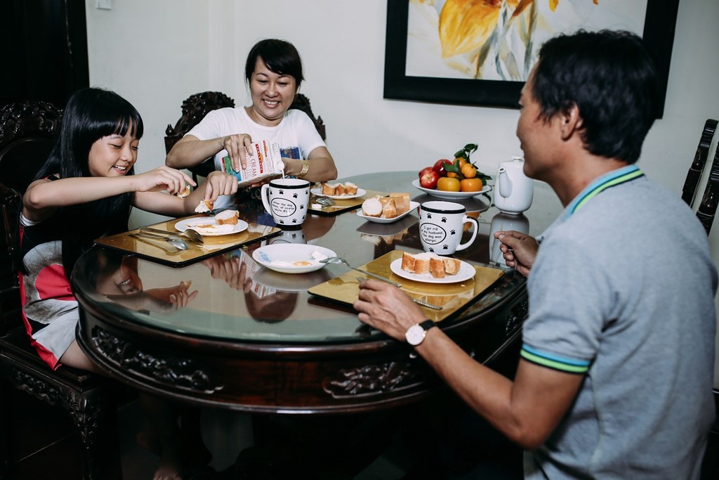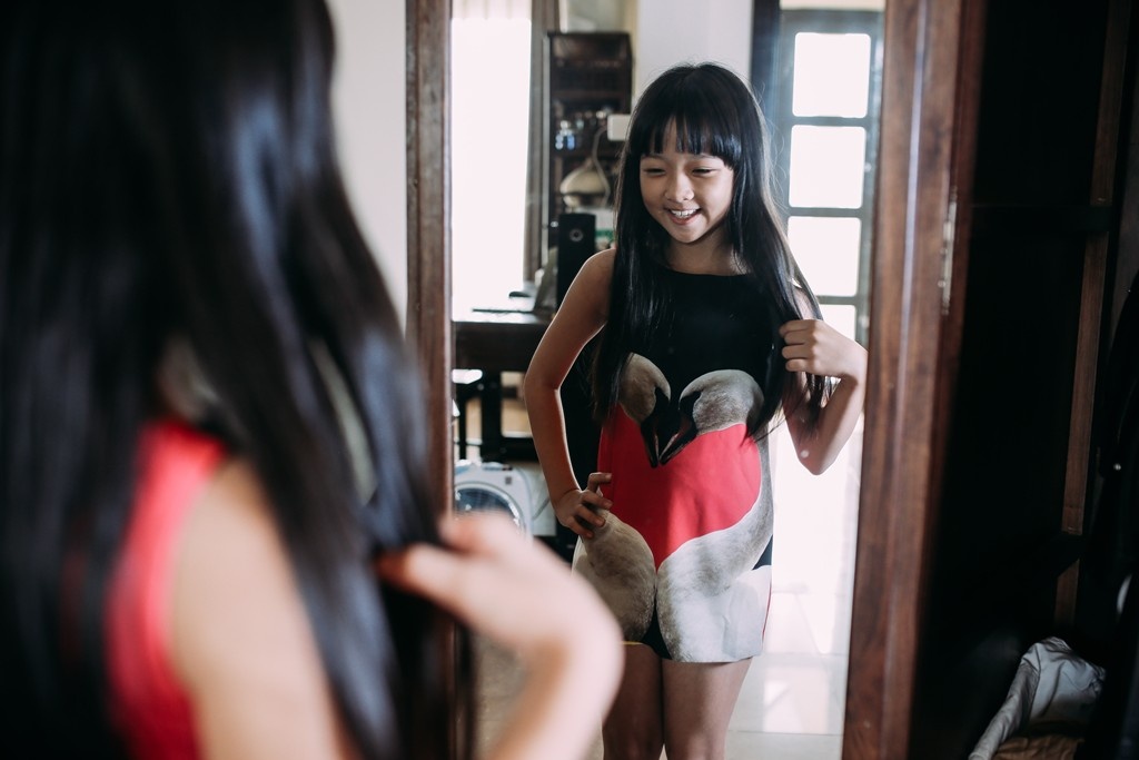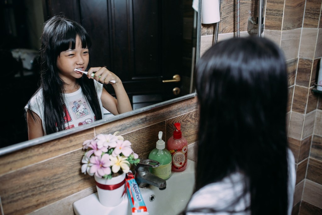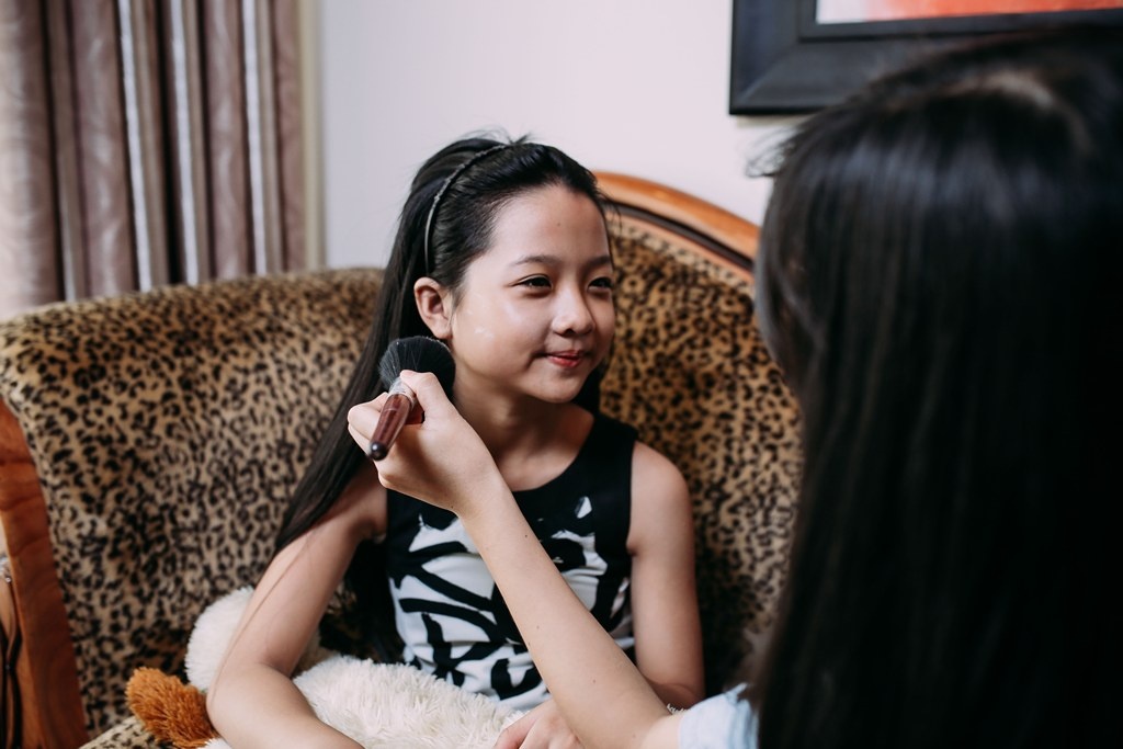 Nhân ngày cuối tuần không phải đến trường, Thanh Mỹ có nhiều thời gian để tham gia các hoạt động nghệ thuật, niềm đam mê lớn của cô bé 8 tuổi. Từ 7h sáng, nhóc tỳ từng đảm nhận vai chính phim Đoạt hồn đã thức dậy, làm vệ sinh cá nhân để chuẩn bị cho một ngày bận rộn.