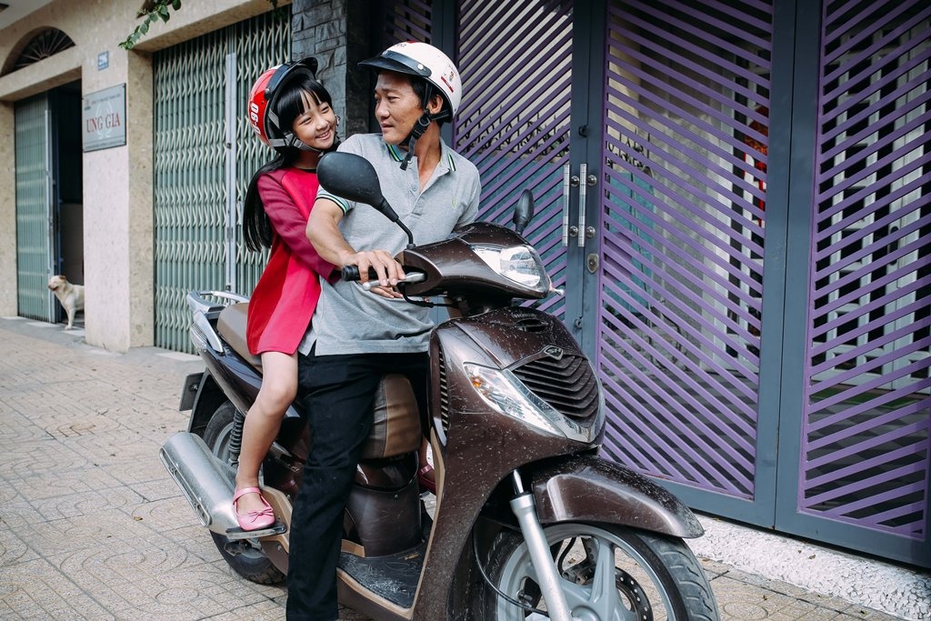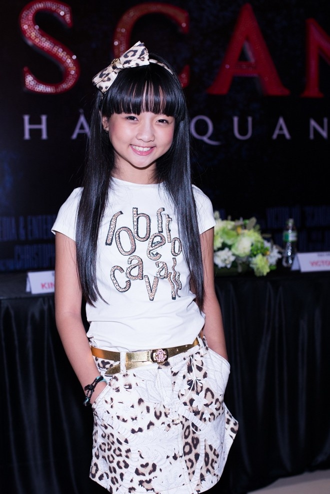 | Ngay sau đó, Thanh Mỹ đã được ba chở đến phim trường nơi cô bé quay hình cho một vai diễn nhỏ trong phim truyền hình. Bộ cánh Roberto Cavalli cùng với chiếc túi xinh xắn của Young Versace giúp Thanh Mỹ chiếm được nhiều cảm tình từ người đối diện. |