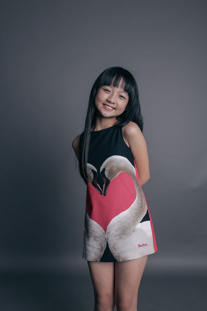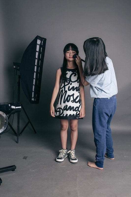| Kết thúc buổi chụp ảnh buổi sáng, chiều cùng ngày, Thanh Mỹ có buổi chụp ảnh chung với Ben Lee - nhóc tỳ 6 tuổi đang làm người mẫu ảnh và được yêu thích nhất hiện nay. Ben Lee với áo sọc kẻ hình 2 chữ F ngược nhau, một trong những nét đặc trưng của thương hiệu Fendi và Thanh Mỹ với họa tiết hoạt hình nhí nhảnh in trên thân áo Moschino thể hiện sự sành điệu và cuốn hút. Cặp chị em rất ăn ý khi làm việc chung. |
