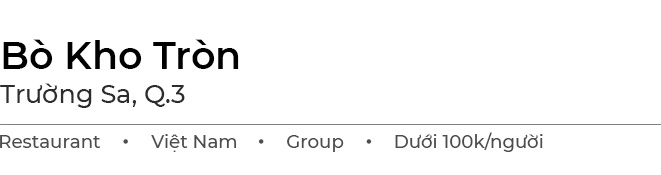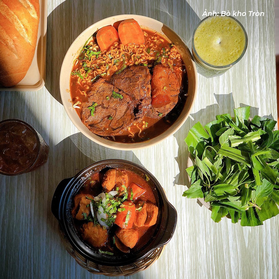 Mở cửa từ 6h30, Bò Kho Tròn là địa chỉ lý tưởng để bạn tận hưởng bữa sáng ở TP.HCM. Một phần khá chất lượng, tô đặc biệt có thêm bắp bò hoa. Thịt bắp mềm, mọng nước, có vân mỡ và gân xen kẽ. Nước dùng được nấu sền sệt, vị ngọt thanh và dậy mùi hồi quế nhưng thiếu chút đậm đà hậu vị. Để chắc bụng hơn, thực khách thường chọn ăn kèm bò kho với bánh mì, hủ tiếu, mì tươi hoặc mì gói.