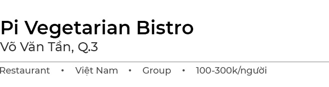 Tôi đến Pi Vegetarian Bistro cùng đồng nghiệp trong giờ nghỉ trưa. Trái với nhiệt độ cao bên ngoài, không gian quán mộc mạc từ cách bố trí bàn ghế gỗ, tượng Phật đến bức tranh treo tường khiến tôi nhẹ nhàng hơn. Bên cạnh những mảng xanh cây cối, quán cũng tận dụng ánh sáng tự nhiên giúp người dùng thoải mái và ngon miệng khi dùng bữa.