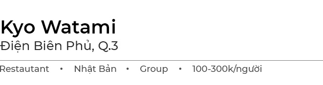 Tương tự nhiều nhà hàng Nhật Bản khác, Kyo Watami sử dụng chất liệu trang trí từ gỗ kết hợp cùng ánh đèn vàng mang lại không gian ấm cúng và lịch sự. Tôi chọn ngồi ở khu vực bàn có màn che vì tạo cảm giác riêng tư, thích hợp thư giãn sau ngày dài làm việc.
