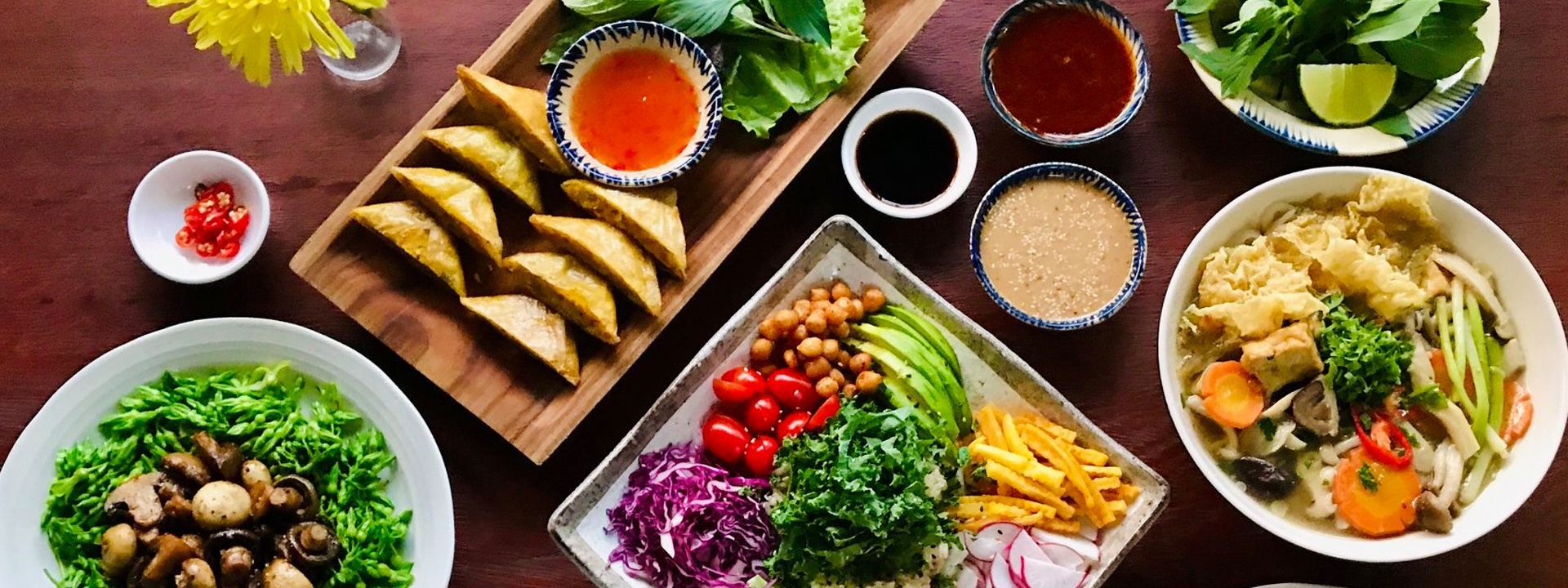 Thực đơn đa dạng từ gỏi, các món bánh Việt, bún, miến, lẩu… Tôi thích nhất là nấm bào ngư chiên mè ăn giòn giòn lạ miệng, đậu hũ non nấm sốt tiêu Tứ Xuyên cay nóng ấn tượng. Một vài món ăn đây nêm nếm nhiều gia vị và dầu mỡ nên có thể không hợp khẩu vị với người thích sự thanh đạm.