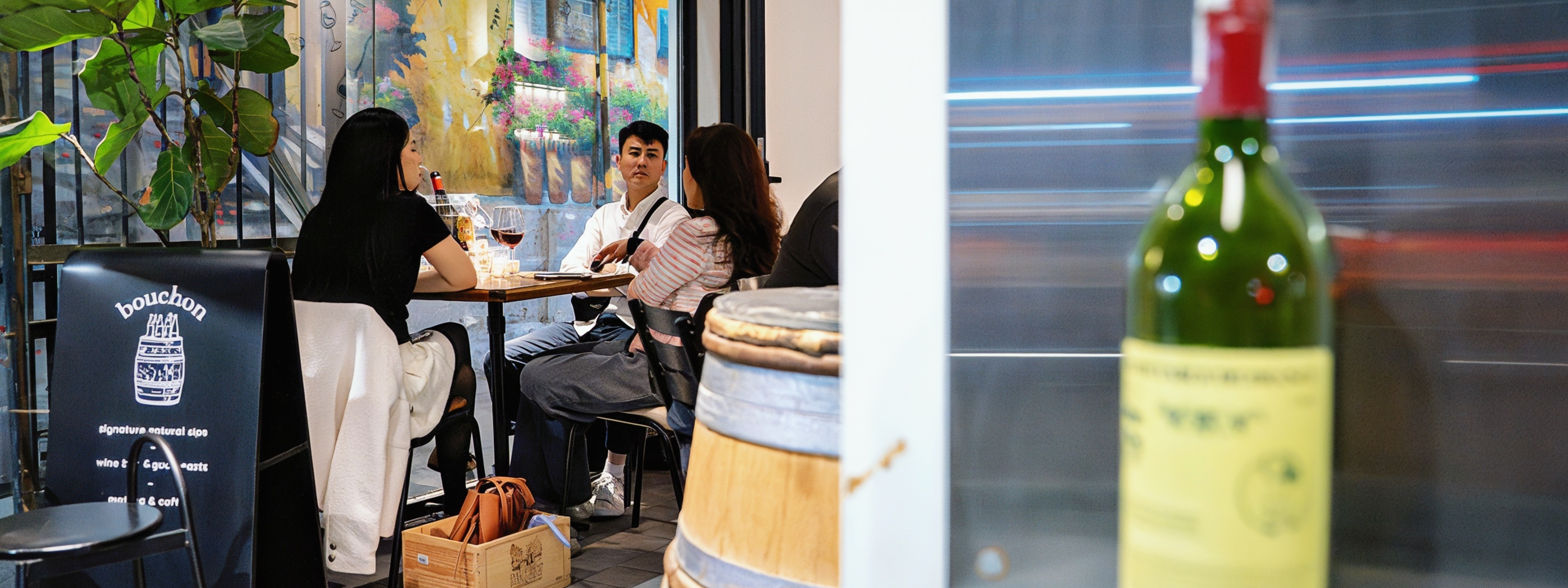 | Vào cuối tuần, nhiều nhóm bạn và các cặp đôi chọn wine bar vỉa hè làm điểm gặp gỡ sau giờ làm. Họ vừa uống vang, trò chuyện, vừa chụp ảnh check-in hoặc quan sát nhịp phố xung quanh. Không gian với bàn ghế bố trí sát nhau tạo cảm giác gần gũi nhưng vẫn đủ tách biệt cho những cuộc hẹn riêng. |