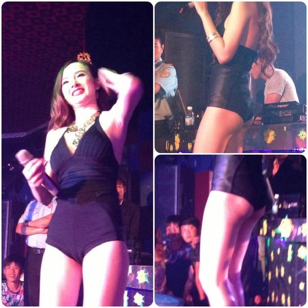 | Có thể nói, đây là món đồ được Angela Phương Trinh ưa chuộng khi đi biểu diễn. Tuy nhiên, nhiều ý kiến cho rằng, trông cô như mặc đồ bơi trên sân khấu. |