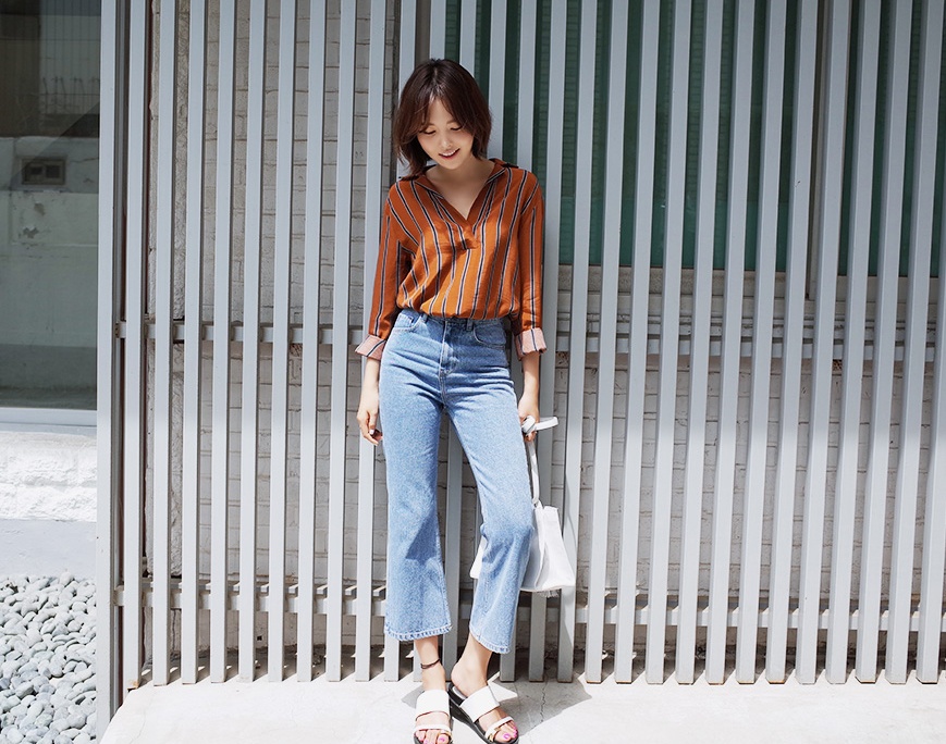| Với mùa thu, bạn có thể làm mới cùng tông vàng nâu kết hợp cùng quần jeans lửng trẻ trung. |
