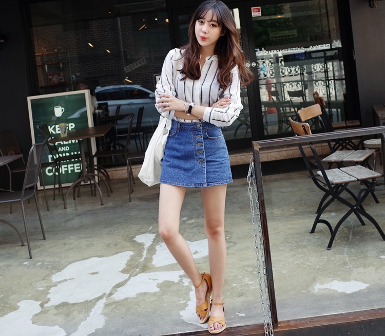 | Thời trang xuống phố thu hút cùng mốt sơ mi kẻ thô và váy cài cúc lệch. |