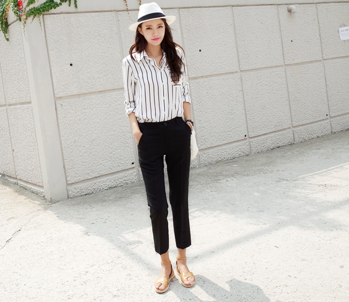 | Gợi ý cho ngày nắng thêm mát mẻ với mốt quần lửng và áo sơ mi kẻ thô. |