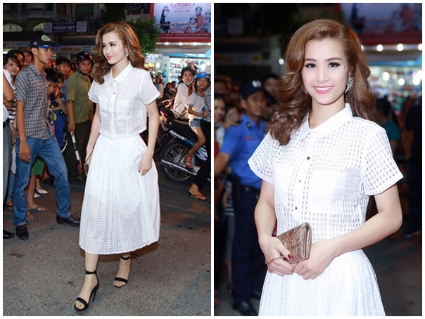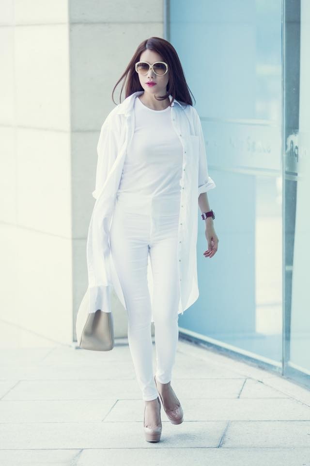 | Sau nhiều năm bị lãng quên, gam màu trắng trở thành xu hướng hot trong năm 2015. Đặc biệt, thiết kế sơ-mi căn bản được yêu thích hơn cả vào mùa hè 2015. Đón đầu trào lưu đang có sức ảnh hưởng giới trẻ, nhiều sao Việt ứng dụng kiểu mốt với nhiều cách mix - match sáng tạo. Trong ảnh, Trương Ngọc Ánh diện sơ-mi trắng bên ngoài set trang phục "cây trắng" lịch thiệp. |