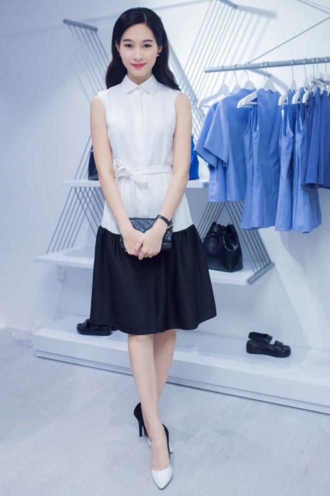 | Hoa hậu Đặng Thu Thảo là một trong những tín đồ của gam màu trắng. Đầu hè 2015, người đẹp gốc Bạc Liêu để lại hình ảnh đẹp với nhiều cách mix thú vị, để lại hình ảnh trong trẻo, thanh lịch. |