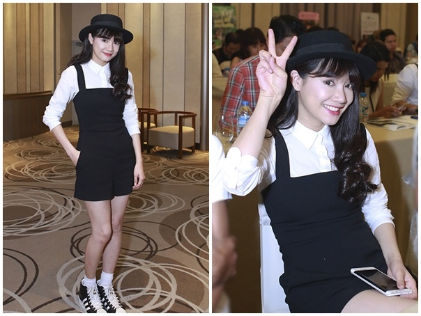 | Xu hướng thời trang nữ sinh được nhiều sao Việt lăng xê trong tháng 5. Nhanh nhạy với trào lưu đang hot, Nhã Phương chọn mốt jumpsuits yếm mix cùng áo sơ-mi trắng. Phụ kiện mũ fedora và giày bata đồng điệu phong cách. |