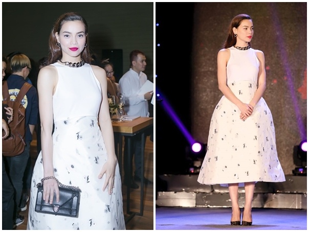 | Với mốt tóc ướt, Thanh Hằng cũng có cách dùng trang phục ăn ý. So với Hồ Ngọc Hà, siêu mẫu chọn cách tạo kiểu ôm vừa phải. |