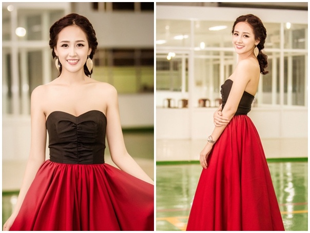 | Tóc lệch ngôi: Kiểu tóc truyền thống, tồn tại qua nhiều mùa mốt được các người đẹp chọn lựa ở đời thường và khi dự tiệc. Mai Phương Thúy có cách ứng dụng thông minh khi diện đầm dạ hội tối màu nền nã, kiểu tóc cột đuôi ngựa nữ tính. |