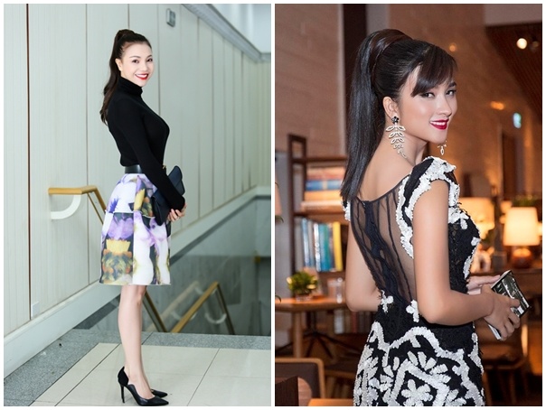 | Tóc đuôi gà cột cao: Trà Ngọc Hà và Kim Tuyến đều có cách ứng dụng mốt tóc năng động hiệu quả. Chân dài làng mốt chọn trang phục dự sự kiện lịch thiệp. Trong khi đó nữ diễn viên Tuổi thanh xuân phối cùng váy dạ hội gợi cảm. |