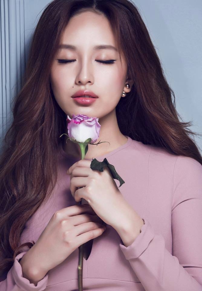| Với mẫu tóc xoăn nhẹ kết hợp rẽ ngôi giữa, Diễm My 9x khắc phục được nhược điểm gương mặt to. |