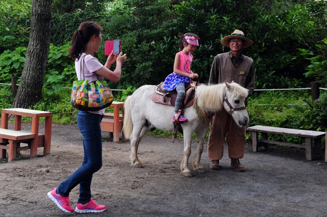 | Trẻ em được tập cưỡi con ngựa nhỏ. |