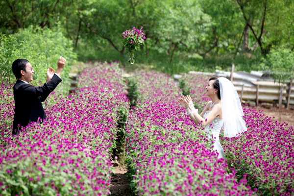 Một hai năm trở lại đây, làng hoa Nhật Tân xuất hiện dịch vụ cho thuê vườn chụp ảnh. Nhiều hộ dân trong làng đã thay thế việc trồng đào thật bằng đào giả, đồng thời quây vườn, tạo dựng không gian cho dịch vụ này.