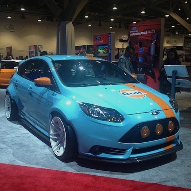 Trong khi đó, Ford lại tỏ ra "chơi trội" khi trưng bày một loạt các mẫu xe "độ" từ gần như tất cả các model của mình. Ngoài Transit, hãng còn có cả một "đội hình" Focus; nổi bật trong số đó là phiên bản Tjin Edition theo phong cách đua rally: