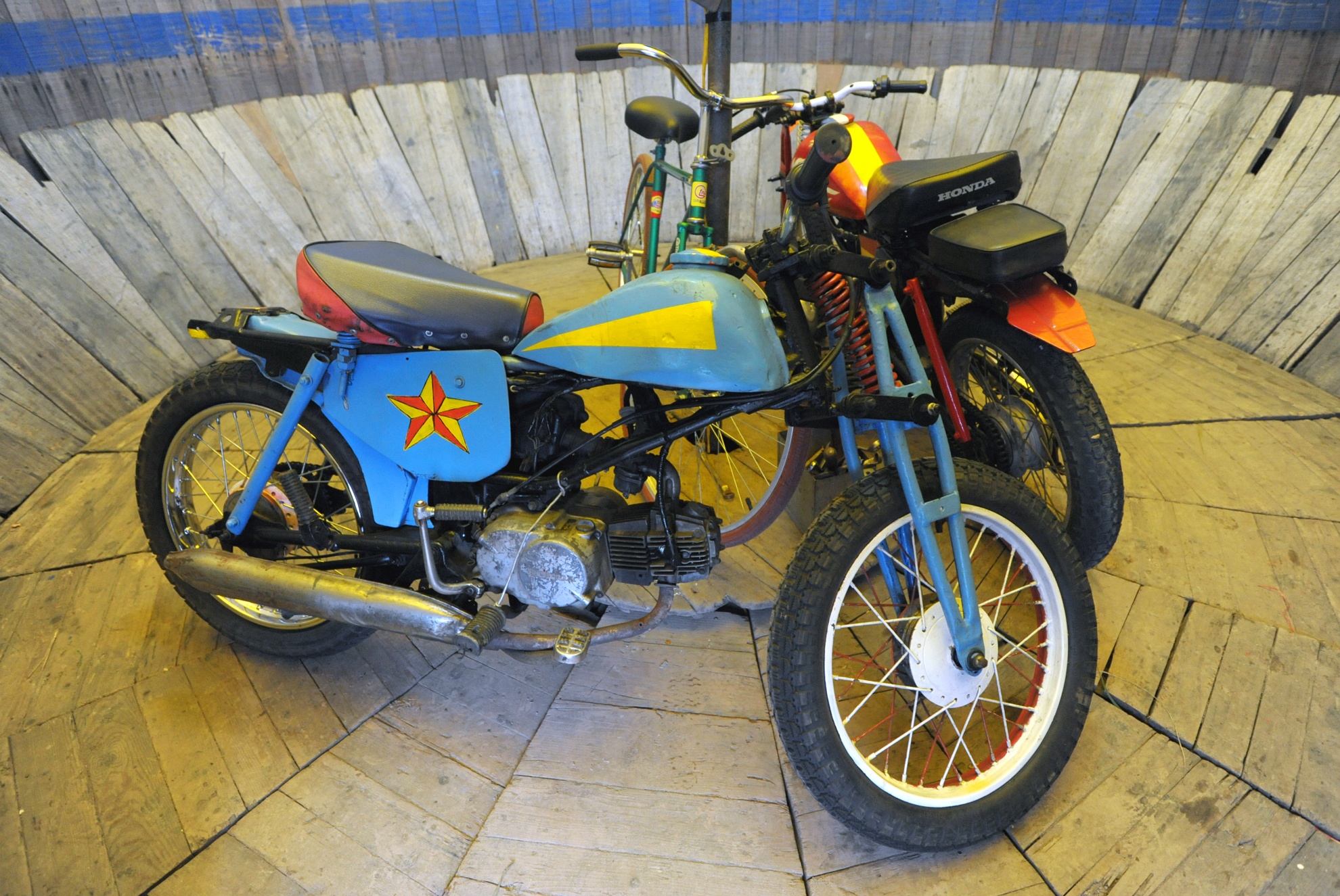| Đạo cụ biểu diễn là những chiếc Honda Win đã được cải tiến để phù hợp với các màn biểu diễn trên cao. Yên xe dành cho một người điều khiển, bình xăng thu hẹp lại để diễn viên có thể linh hoạt đôi chân trong những động tác khó. Trước đây, các đoàn xiếc thường dùng xe máy động cơ hai thì của Đức, Pháp, nhưng do phụ tùng thay thế rất khó để mua, khói và tiếng ồn từ động cơ gây ảnh hưởng tới môi trường biểu diễn nên chúng không còn phù hợp.