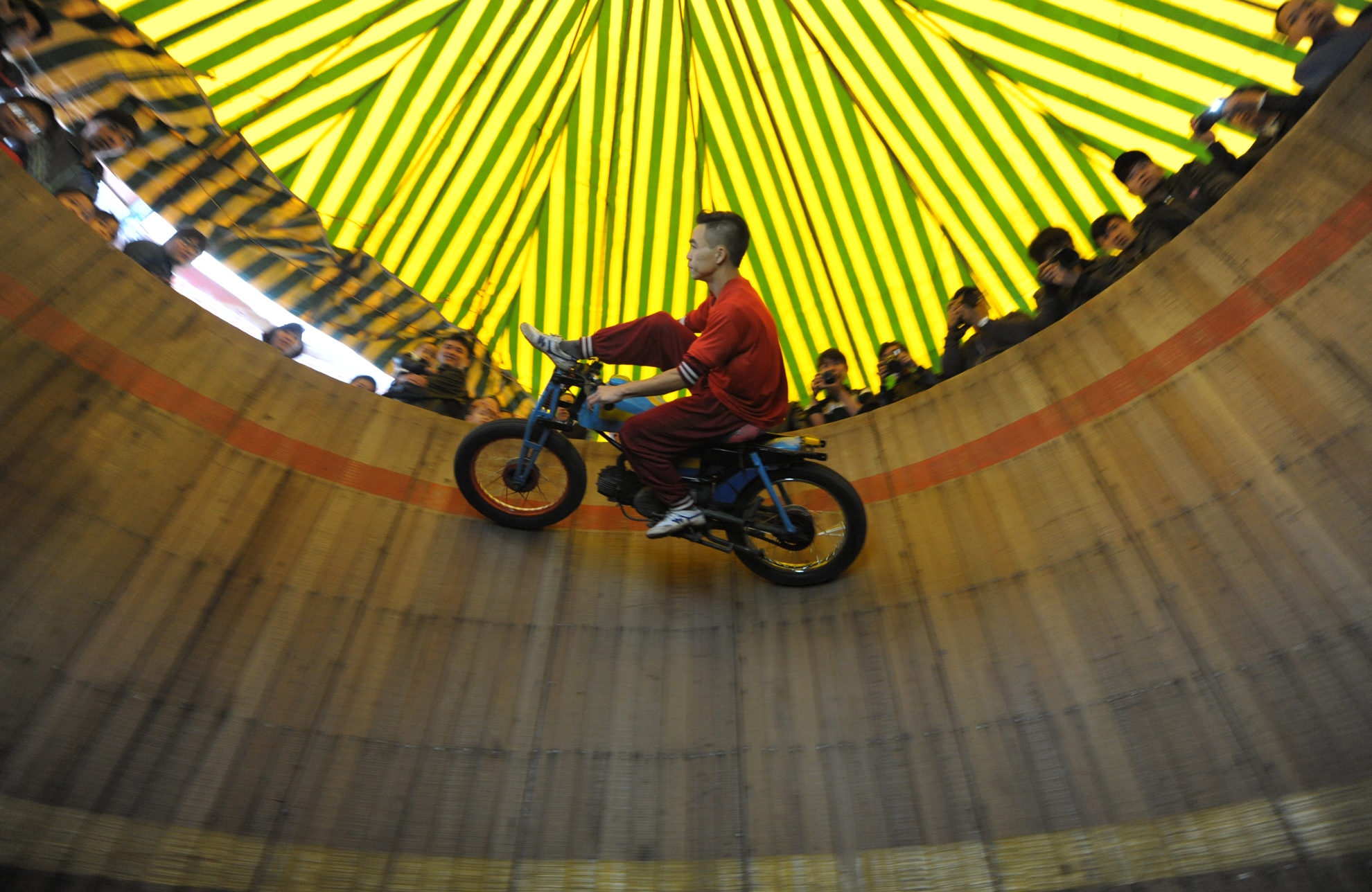 | Có lúc người biểu diễn lao lên sát mép thành, khiến khán giả vừa hồi hộp vừa khoái chí.
