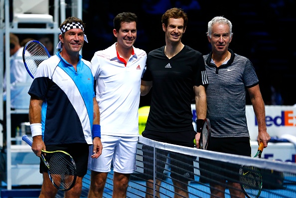 | Ở trận đánh đôi, Murray cùng huyền thoại John Enroe đối đầu với cặp Tim Henman và Pat Cash. |