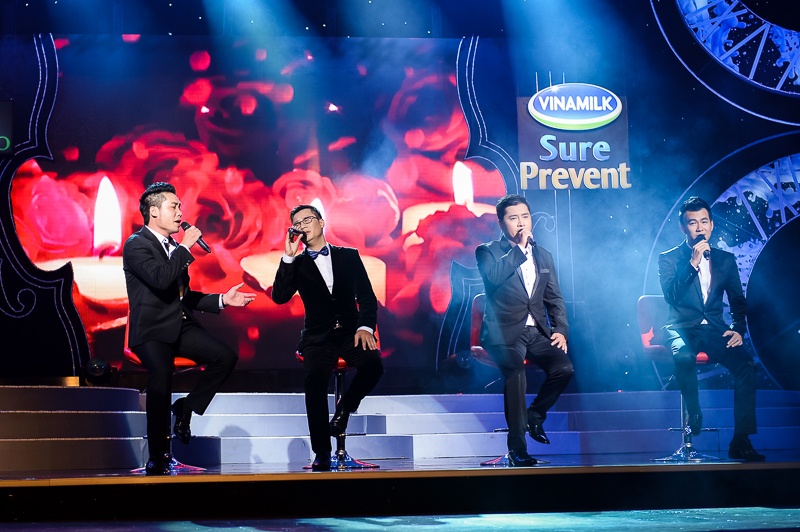 Bốn giọng ca nam đang làm say mê trái tim của giới mộ điệu - Hồ Trung Dũng, Hoàng Bách, Xuân Phú và Tuấn Hiệp - đã cùng hòa giọng vào liên khúc nhạc ngoại lời Việt - Tiếc thương, Giàn thiên lý đã xa và Đồng xanh.