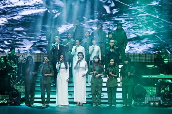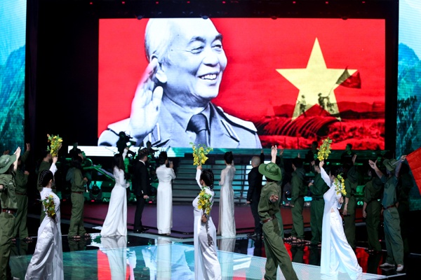Với bức di ảnh của Đại tướng Võ Nguyên Giáp cùng lá cờ Tổ quốc tung bay trên màn hình, màn trình diễn của giám khảo và thí sinh The Voice thay cho lời tri ân sân sắc đến vị đại tướng của nhân dân khiến khán giả xúc động.