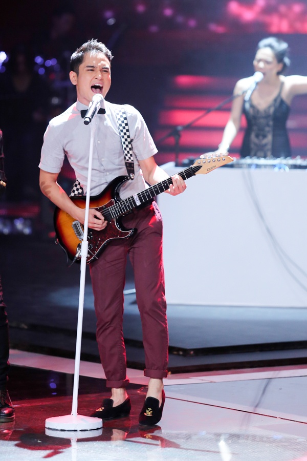 22h40: Hoàng Nhật Minh nồng nàn với Cô gái đến từ hôm qua. Đây là hình ảnh quen thuộc của anh trong suốt cuộc thi từ đầu đến thời điểm hiện tại.