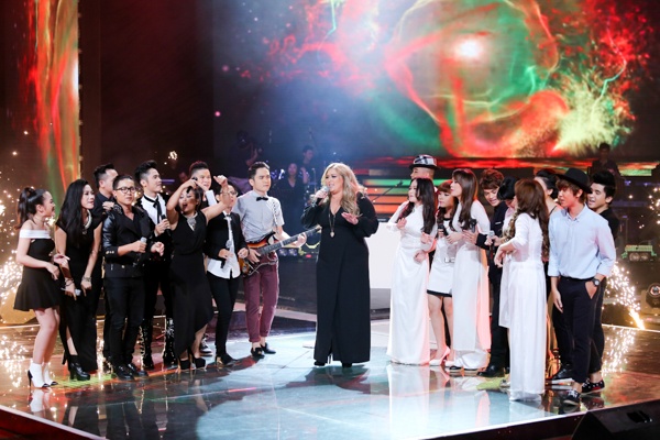 Leanne Mitchell hát cùng dàn thí sinh Giọng hát Việt. |