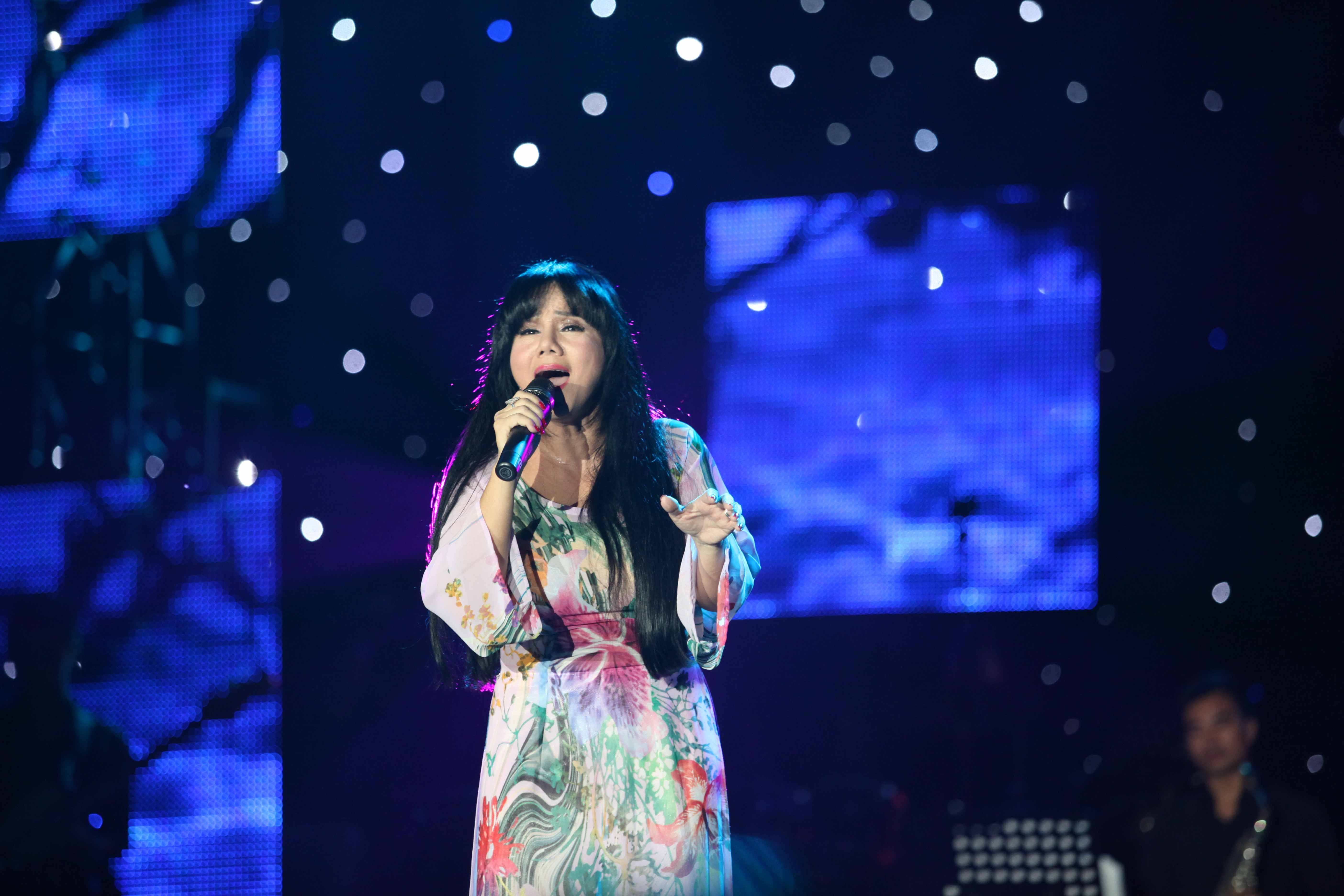 Phương Thanh xuất hiện dịu dàng và tươi trẻ với áo dài xanh và khăn turban cùng màu trên tóc. Chị thể hiện ca khúc Mùa xuân đầu tiên của nhạc sĩ Văn Cao. |