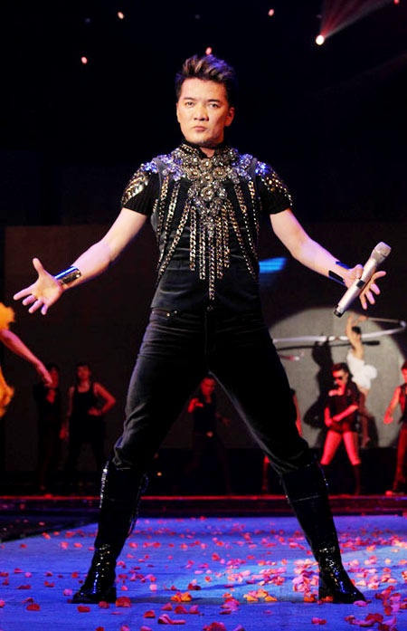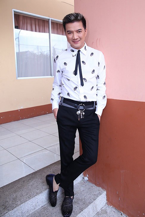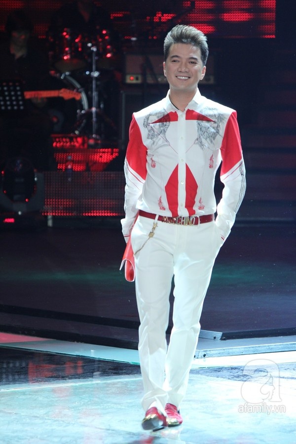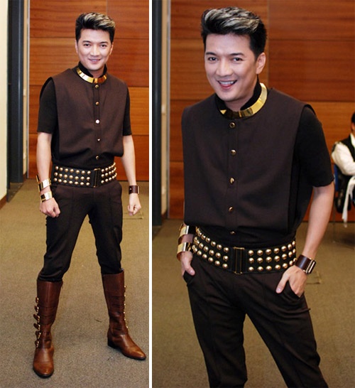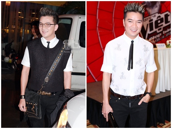 Xuất hiện phía hậu trường Nhân tố bí ẩn 2014, nam giám khảo nổi bật trong bộ cánh màu đen hợp tông, phụ kiện chất liệu kim loại làm điểm nhấn phá cách. Cách chọn và mix trang phục nhấn nhá hợp lý giúp người mặc thể hiện đẳng cấp thời trang.