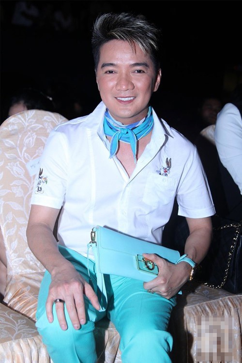 Môt trong những phụ kiện mà Đàm Vĩnh Hưng khó lòng bỏ qua là túi cầm tay (clutch), luôn được phối đồng tông màu cùng trang phục. Trong ảnh, chiếc túi tông màu xanh tiệp màu cùng quần khá ăn ý.