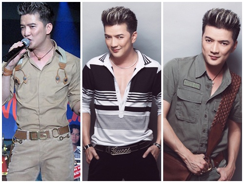 Nam ca sĩ sáng tạo hơn với mốt đeo phụ kiện trên vai áo. Thiết kế tạo điểm nhấn cho bộ trang phục đơn điệu.