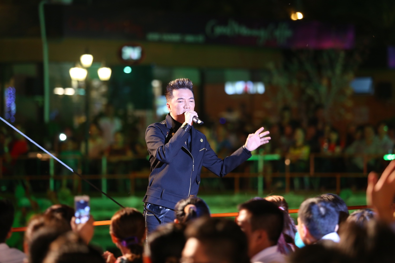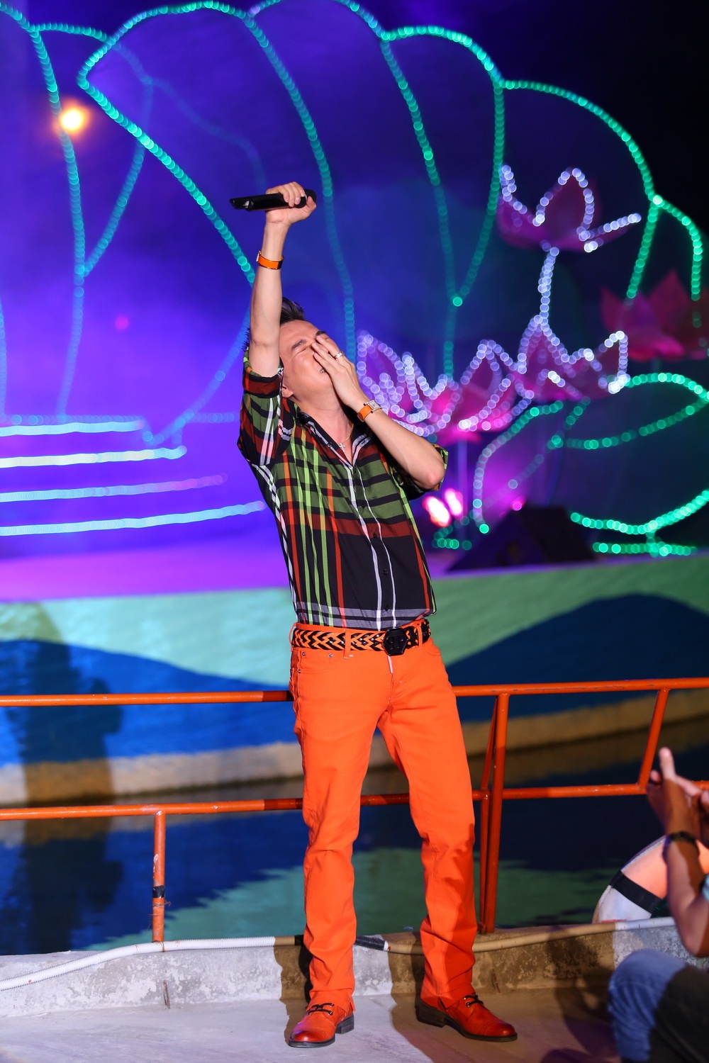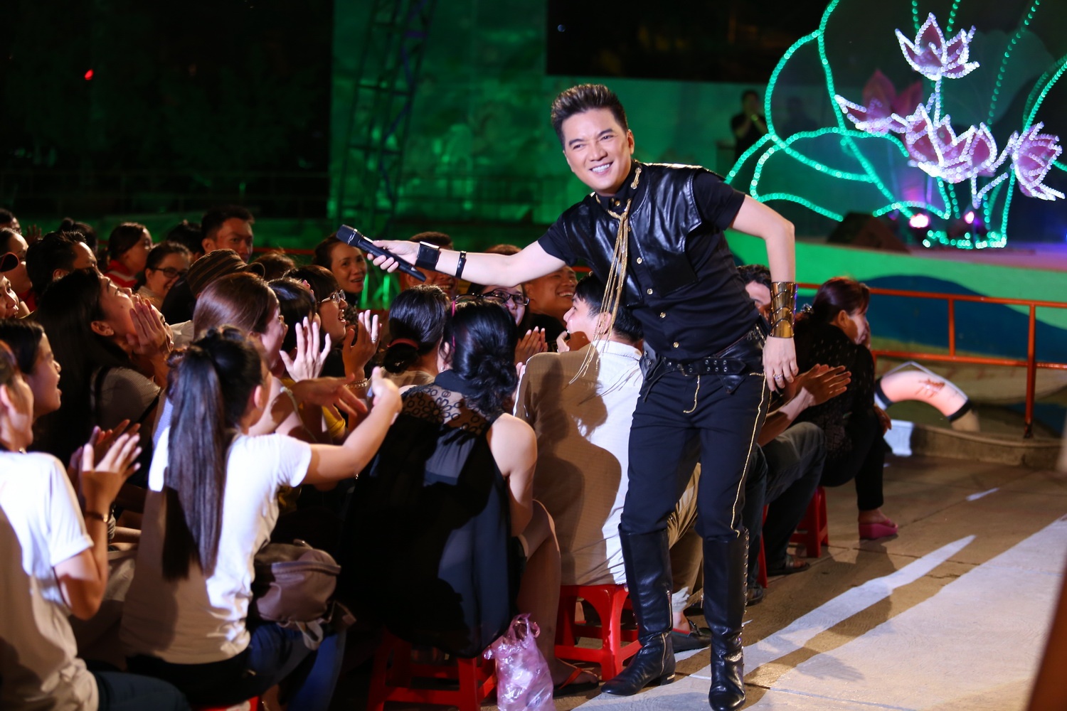 Mr Đàm vui vẻ chụp hình với fan khi đang hát