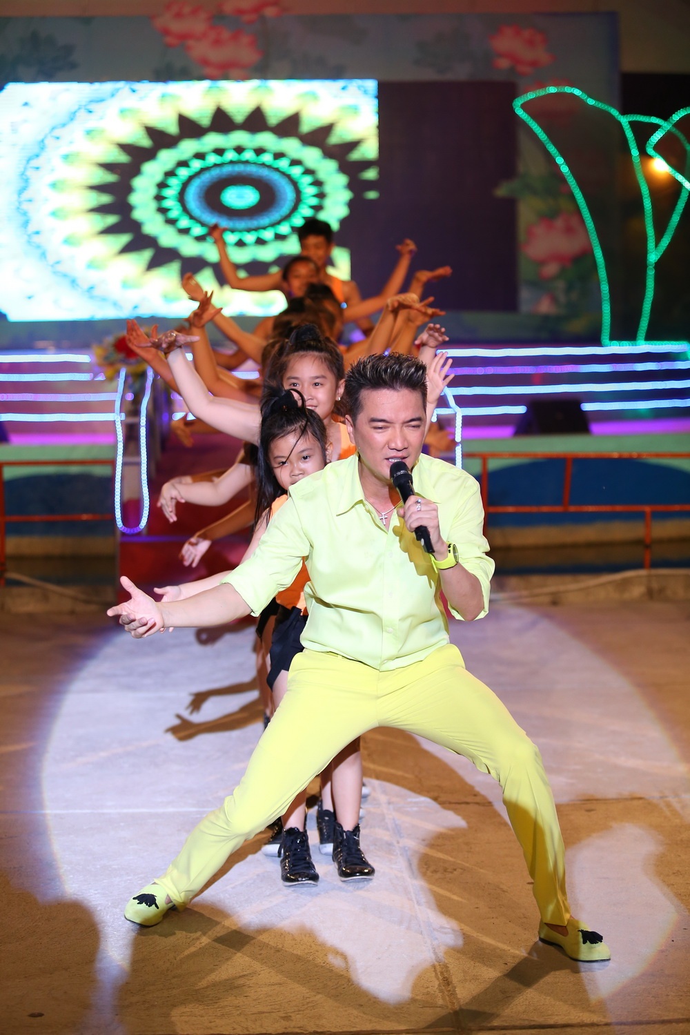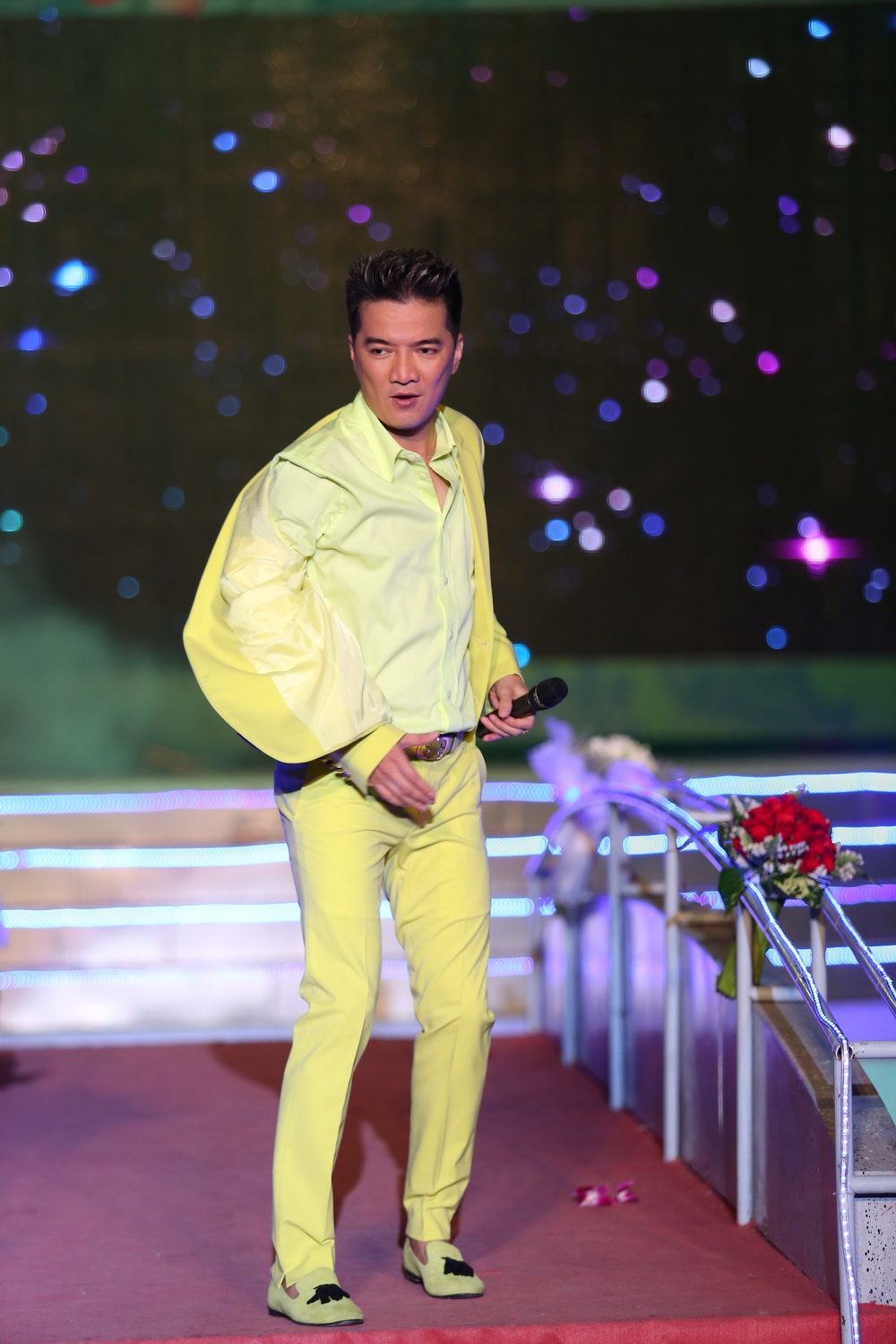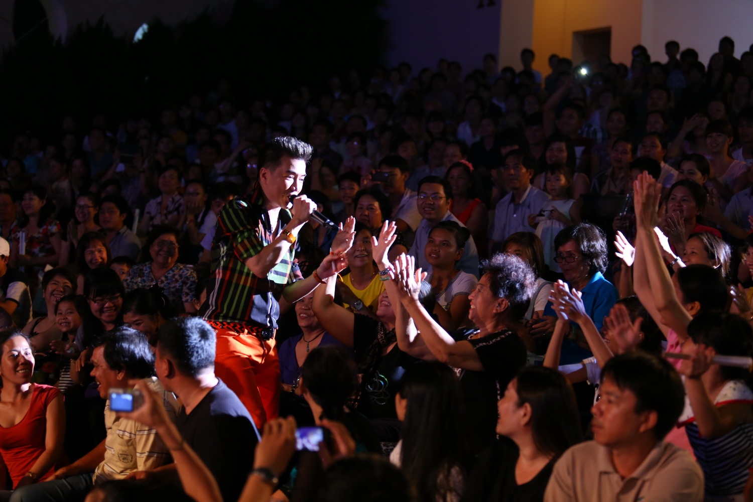| Mr Đàm phá vỡ khoảng cách ngay từ những phút đầu tiên khi xuống tận các hàng ghế khán giả để hát và “quậy” trong vòng hơn 2 giờ đồng hồ. |