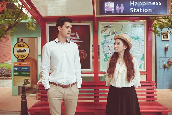| Học trò Phan Thiên Ngân trong một cảnh quay MV mới cùng người mẫu Nhiko Đinh. |
