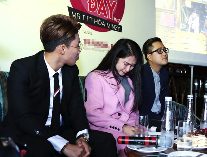| Rapper Mr. T phải dỗ dành để Hòa Minzy bình tĩnh lại. |