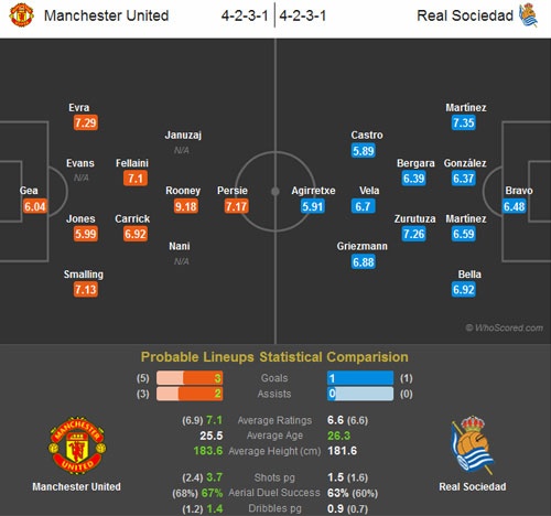 Theo nhận định của nhiều chuyên gia, kết quả trong trận đón tiếp Sociedad sẽ ảnh hưởng rất lớn đến khả năng giành vé vào vòng đấu loại trực tiếp của MU. Nếu giành chiến thắng trước đối thủ đến từ Tây Ban Nha, Quỷ đỏ sẽ có cơ hội rất lớn để giành một trong hai vị trí đầu bảng A. Trước khi trận đấu diễn ra, HLV David Moyes nhắc nhở học trò phải hết sức cảnh giác và có những lời khen ngợi dành cho Sociedad, đội bóng tạm xếp cuối bảng A sau 2 trận trắng tay.