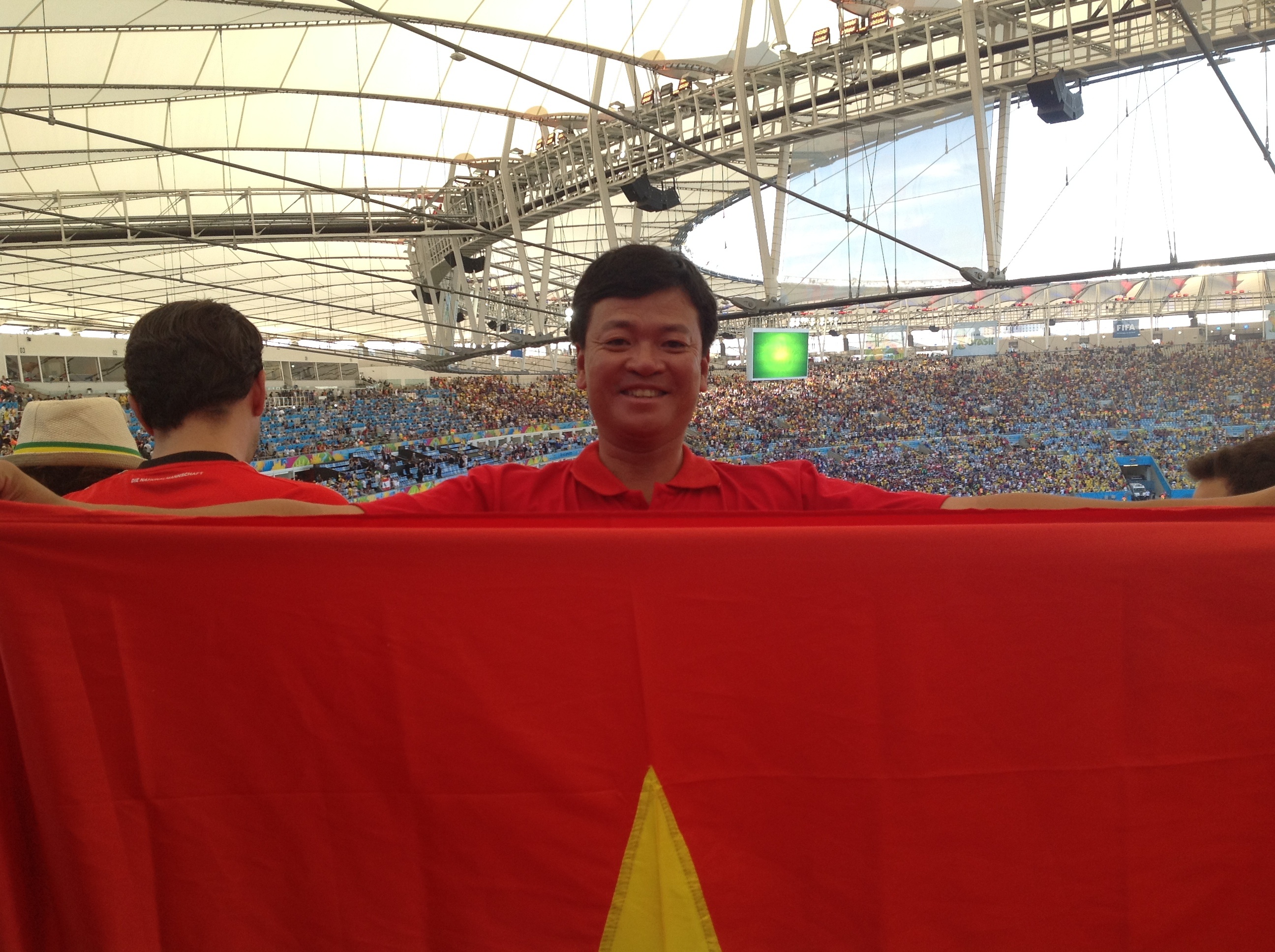 | Một lần nữa hình ảnh cờ Việt Nam lại xuất hiện trên khán đài World Cup 2014. |